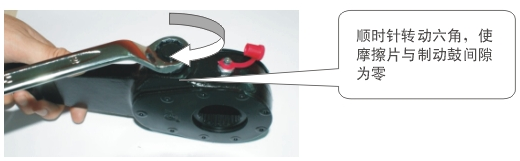 安裝前確保制動氣室推桿處于初始位置,左右氣室初始長度一致,允許誤差±1.5mm。將調(diào)整臂安裝好后,按下圖進(jìn)行制動間隙調(diào)節(jié)。