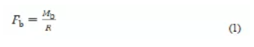 式中:F b 為單臺(tái)制動(dòng)器的有效制動(dòng)力,N;Mb 為單臺(tái)制動(dòng)器的制動(dòng)力矩,當(dāng)試驗(yàn)測(cè)得的制動(dòng)力矩大于產(chǎn)品銘牌標(biāo)定的制動(dòng)力矩;Mb 為產(chǎn)品銘牌標(biāo)定的制動(dòng)力矩,否則,Mb 為實(shí)測(cè)制動(dòng)力矩,N·m;R 為理論制動(dòng)半徑,m。