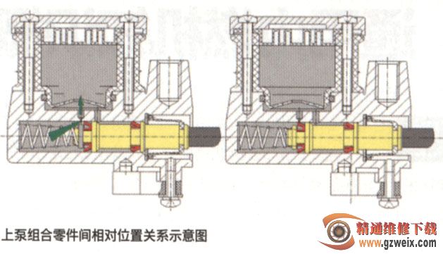 不同廠家的泵體和手柄不能互換,因?yàn)榧词故峭粡S家的泵體和手柄,在不同階段,尺寸加工也可能存在設(shè)計(jì)變更,不能認(rèn)為是完全可以互換的。如圖所示,A和B尺寸會(huì)影響柱塞裝配狀態(tài)。因此,在更換手柄時(shí),要注意零件間的匹配性,若零件間不匹配,要進(jìn)行零件更換或?qū)α慵M(jìn)行補(bǔ)充加工,以滿足產(chǎn)品的適用性。更換手柄主要需保證以下幾點(diǎn)。
