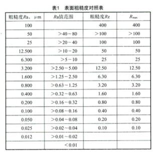 根據(jù)GB/T 1031-2009《產(chǎn)品幾何技術(shù)規(guī)范(GPS)表面結(jié)構(gòu)輪廓法表面粗糙度參數(shù)及其數(shù)值》標準,關于粗糙度有幾個參數(shù),其中在實際生產(chǎn)中作為產(chǎn)品評判用的主要有Ra、Rz和Rmax,根據(jù)表1所示的粗糙度對照表中各粗糙度參數(shù)的關系說明,Ra3.2 μm對應的Rz為12.5 μm。