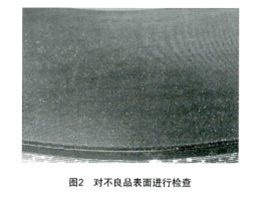 為此,筆者又對產(chǎn)品實物進行了剖面分析,在不良產(chǎn)品表面發(fā)現(xiàn)了許多小點,通過放大觀察,其表面有類似針孔一樣的現(xiàn)象在表面排列如圖2所示。