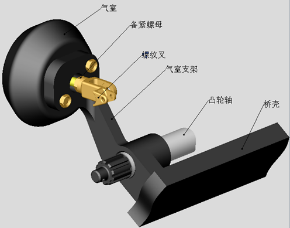 ②安裝調(diào)整臂,把調(diào)整臂安裝在凸輪軸上,并用墊片調(diào)整軸向位置使調(diào)整臂的柄中心與螺紋叉中心對(duì)齊。