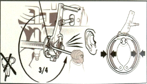 ⑥調(diào)整,按圖示旋轉(zhuǎn)方向手動(dòng)調(diào)節(jié)制動(dòng)間隙至1mm左右,然后踩制動(dòng)15次以上,使制動(dòng)間隙達(dá)到預(yù)設(shè)值。